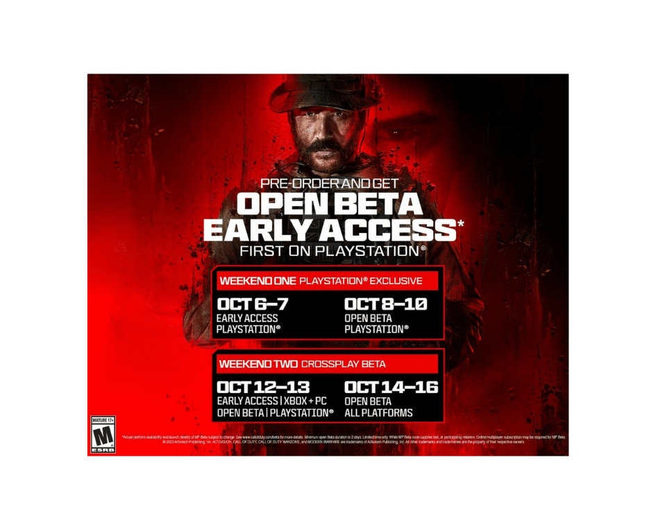 ADAPT OR DIE IN A FIGHT AGAINST THE ULTIMATE THREAT In the direct sequel to the record-breaking Call of Duty: Modern Warfare II, Captain Price and Task Force 141 face off against the ultimate threat. The ultranationalist war criminal Vladimir Makarov is extending his grasp across the world causing Task Force 141 to fight like never before. Combat means making choices — different loadouts, different paths through the mission. In addition to the signature, cinematic Call of Duty campaign missions, Modern Warfare III introduces open combat missions that provide more player choice. There is no one-size-fits-all solution – it is your choice whether to take the stealthy approach or go loud taking on any and all foes. IT’S TIME TO SETTLE OLD SCORES AND START NEW ONES Modern Warfare III celebrates the 20th anniversary of Call of Duty with one of the greatest collections of Multiplayer maps ever assembled – both fan favourites and all new ones. All 16 launch maps from the original Modern Warfare 2 (2009) have been modernised with new modes and gameplay features and will be available at launch to get everyone started, while over 12 all-new core 6v6 maps will fuel post-launch live seasons. Modern Warfare III will also launch with new Ground War maps boasting innovative play spaces and the epic return and evolution of the popular War Mode that first debuted in 2017’s Call of Duty: WWII. ALL NEW OPEN WORLD ZOMBIES For the first time, team up with other squads to survive and fight massive hordes of the undead in the largest Call of Duty Zombies map ever. Modern Warfare Zombies (MWZ) tells a new Treyarch Zombies story with missions, core Zombies features and secrets to discover. Ready up for an open world PvE survival experience against some of the biggest enemies in Call of Duty history. *Actual platform availability and launch date(s) of Beta subject to change. See www.callofduty.com/beta for more details. Minimum Open Beta duration is 2 days. Limited time only